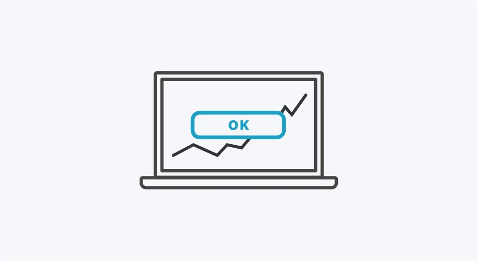Icon Laptop mit einer ausgefüllten Eingabemaske und einem blauen Bestätigungsbutton